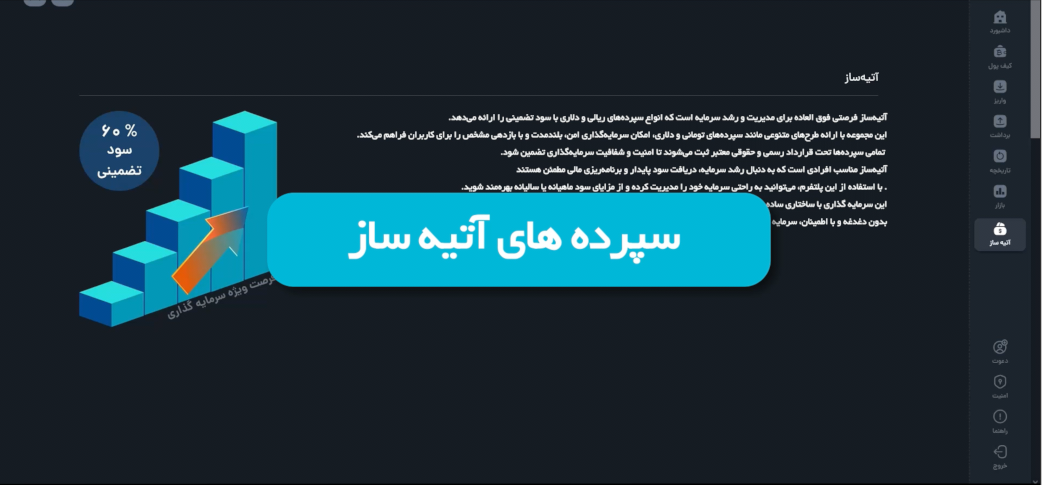 با سپردهگذاری در صرافی ما، داراییهای شما فرصت رشد پیدا میکنند و از سود قابل توجه بهرهمند میشوید. فرآیند سپردهگذاری ساده و شفاف طراحی شده تا در کمترین زمان، سرمایه خود را در سیستم قرار دهید و از مزایای آن استفاده کنید. یکی از بزرگترین مزایای این بخش، دریافت سود بهصورت مستمر و بدون پیچیدگی است که به شما امکان میدهد برنامهریزی مالی دقیقتری داشته باشید. امنیت بالای زیرساختها و پشتیبانی دائمی، تضمین میکند که سرمایه شما همواره در محیطی مطمئن رشد کند و در کنار آن، کنترل کامل روی داراییهایتان حفظ شود.